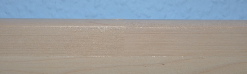 Lange nicht so schlimm wie bei dem anderen Brett, doch auch hier spürt man schon deutlich mit dem Finger, dass das nicht plan sitzt und sicher nicht so vom Hersteller gedacht war oder vielleicht vorhandene Qualitätsansprüchen gerecht wird.